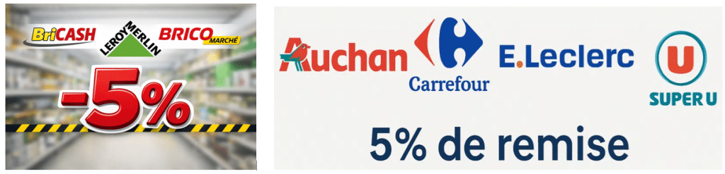 | Alimentation grande distribution | Super et hypermarchés et Drive | jusqu'à -5% |